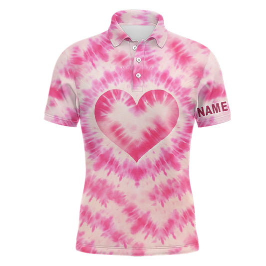 Entdecken Sie das stylische Herren-Polo-Shirt mit pinkem Herz-Tie-Dye von Climgolf – das perfekte Outfit für...