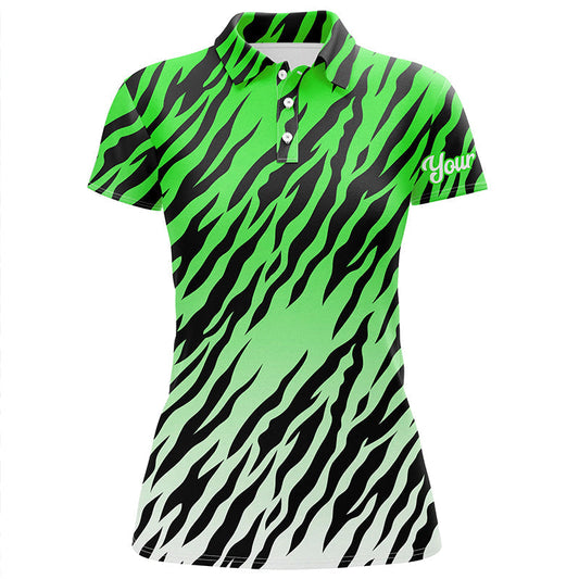 Entdecken Sie das modische Damen Golf Polo mit einem einzigartigen grünen Tigerstreifen-Muster von Climgolf –...