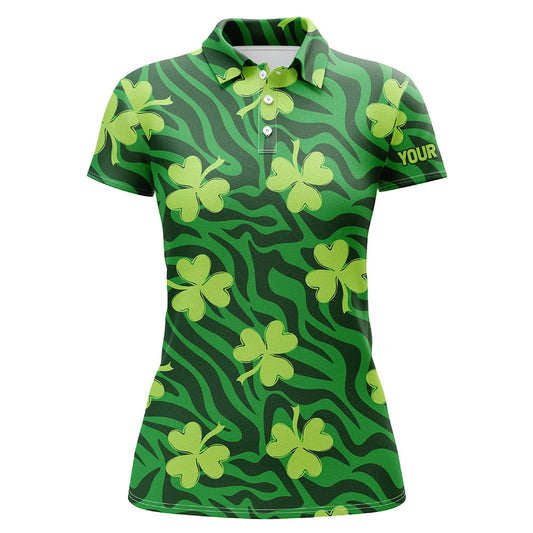 Entdecken Sie das modische grüne Kleeblatt Polo-Shirt für Damen, das perfekt zum St. Patrick's Day...