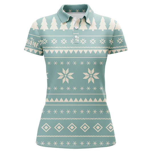 Entdecken Sie das festliche Weihnachtsbaum- und Schneeflocken-Muster Damen Golf-Polo-Shirt von Climgolf – Ihr perfekter Begleiter...