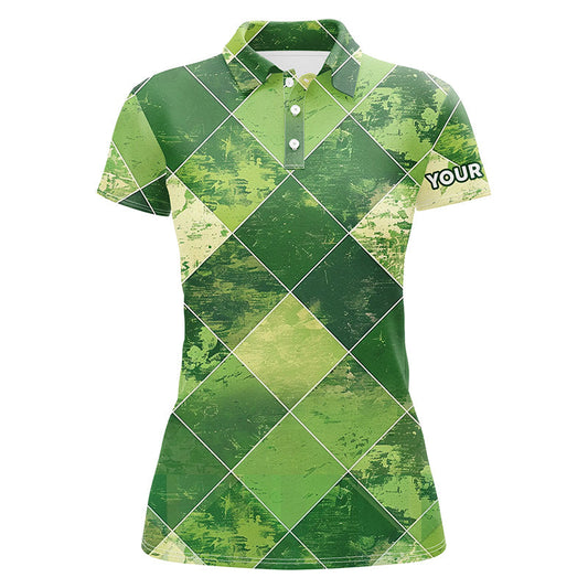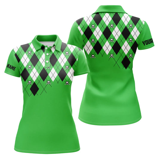 Damen Golf Polo-Shirt in Übergrößen mit grünem Rautenmuster und individuellem Totenkopf-Design N4966