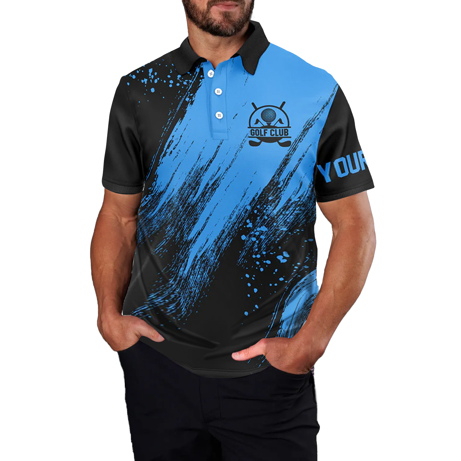 Personalisierte Herren Golf Poloshirts in Schwarz und Blau – Ideale Geschenke für Golfer N7345