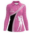 Damen Golf Polo in Schwarz und Pink mit Hawaiianischem Tribal-Muster N8221