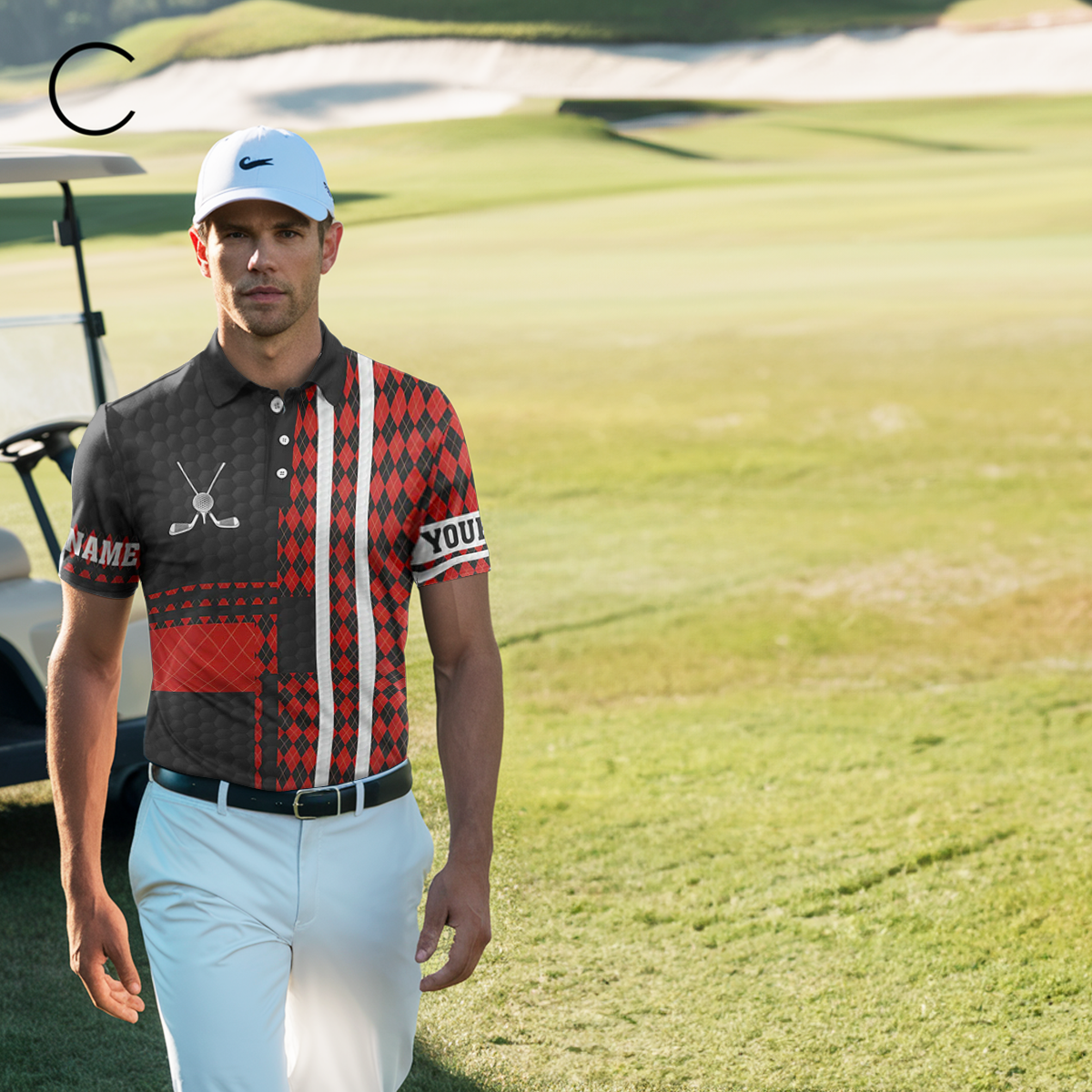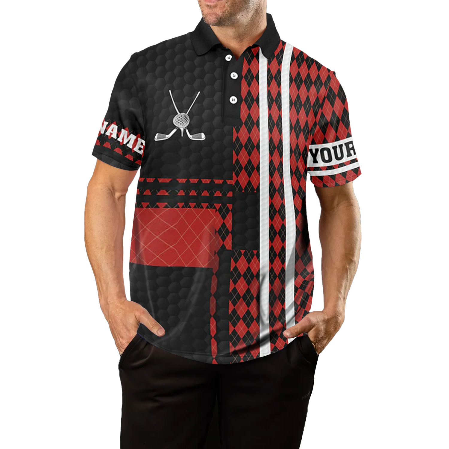 Schwarzes und rotes Argyle-Muster Herren Golf Polo-Shirt - Individuelles Golf Geschenk - Das beste Golfoberteil für Herren N7089