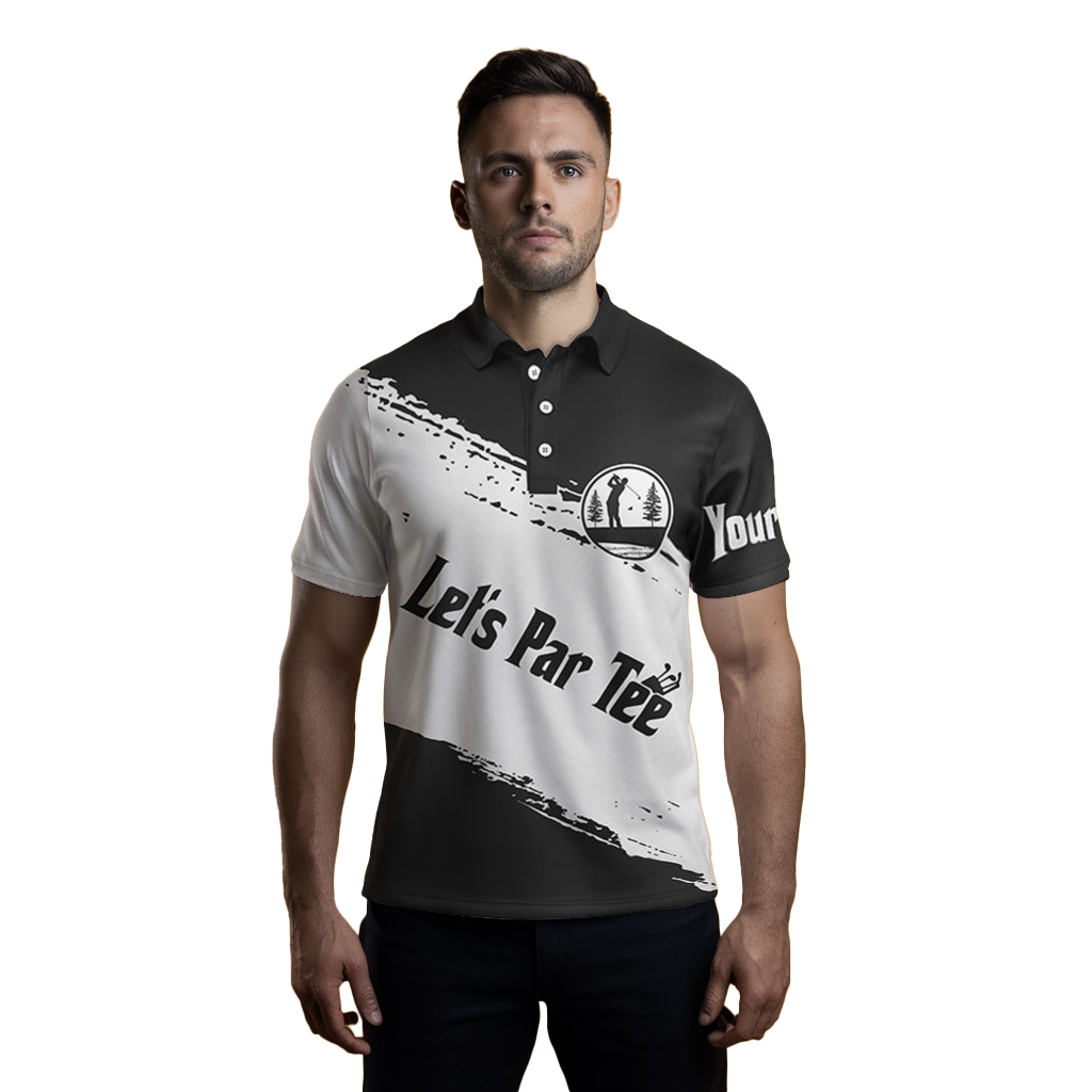 Personalisierbares Schwarz-Weiß Golf-Polo für Herren - Let's Par Tee - Hochwertige Golfbekleidung für Männer N5454