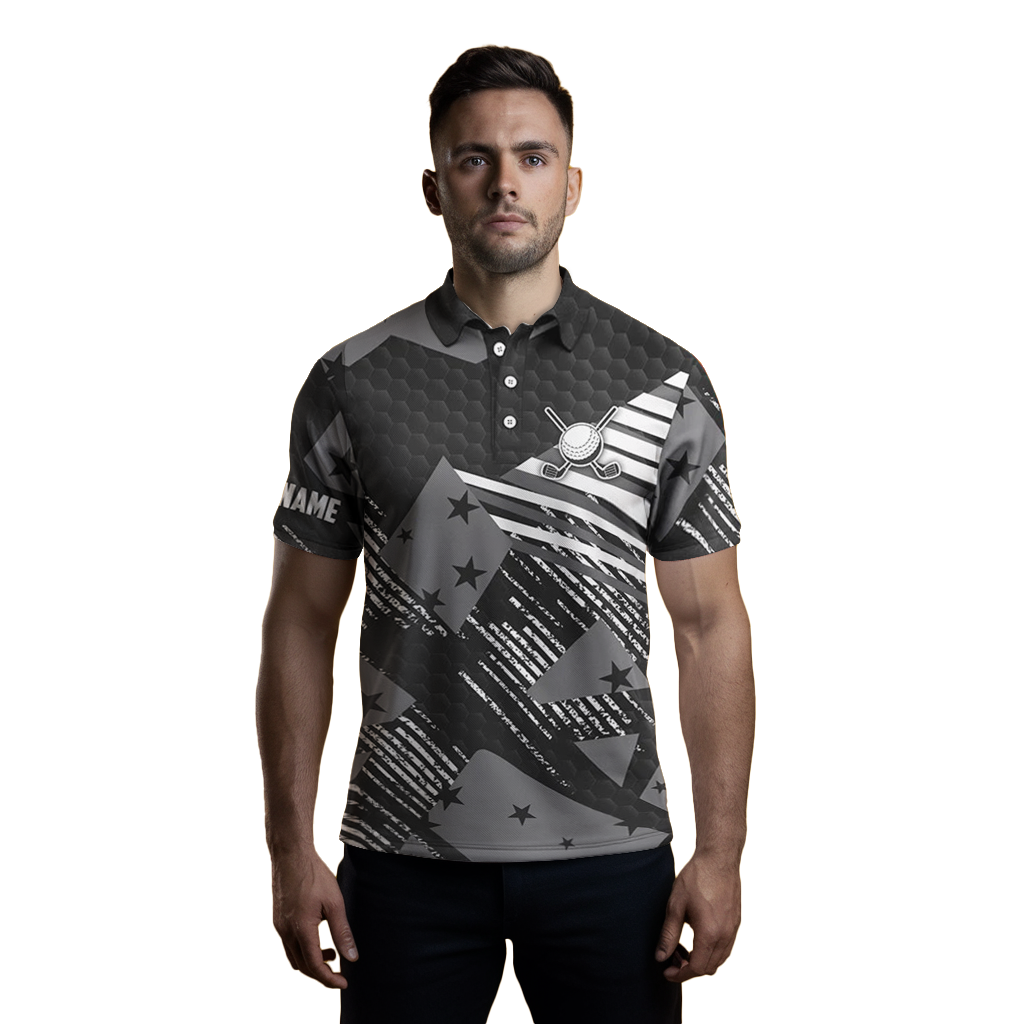 Monochromes Flammenmuster Herren Poloshirt | Individuelle Golfshirts für Männer | Perfekte Golfgeschenke N7443