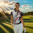 Stylische Schwarz-Weiß Retro Golf Poloshirts für Damen - Individuelle, coole Golfshirts, die perfekte Geschenke für Golfspielerinnen N7156