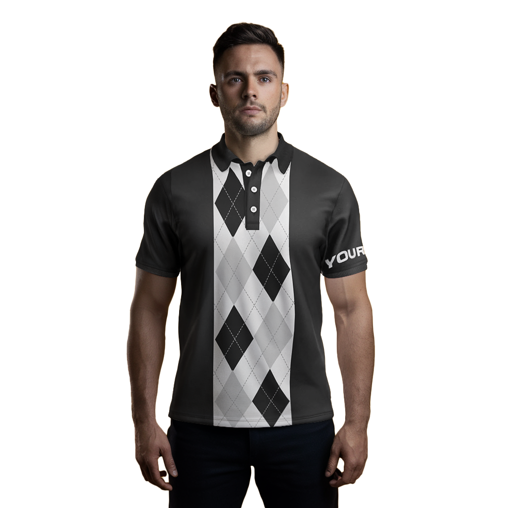 Herren Golf-Polo-Shirt mit schwarzem Argyle-Muster – Individuell gestaltbares Golfhemd – Perfektes Geschenk für Golfer N7192