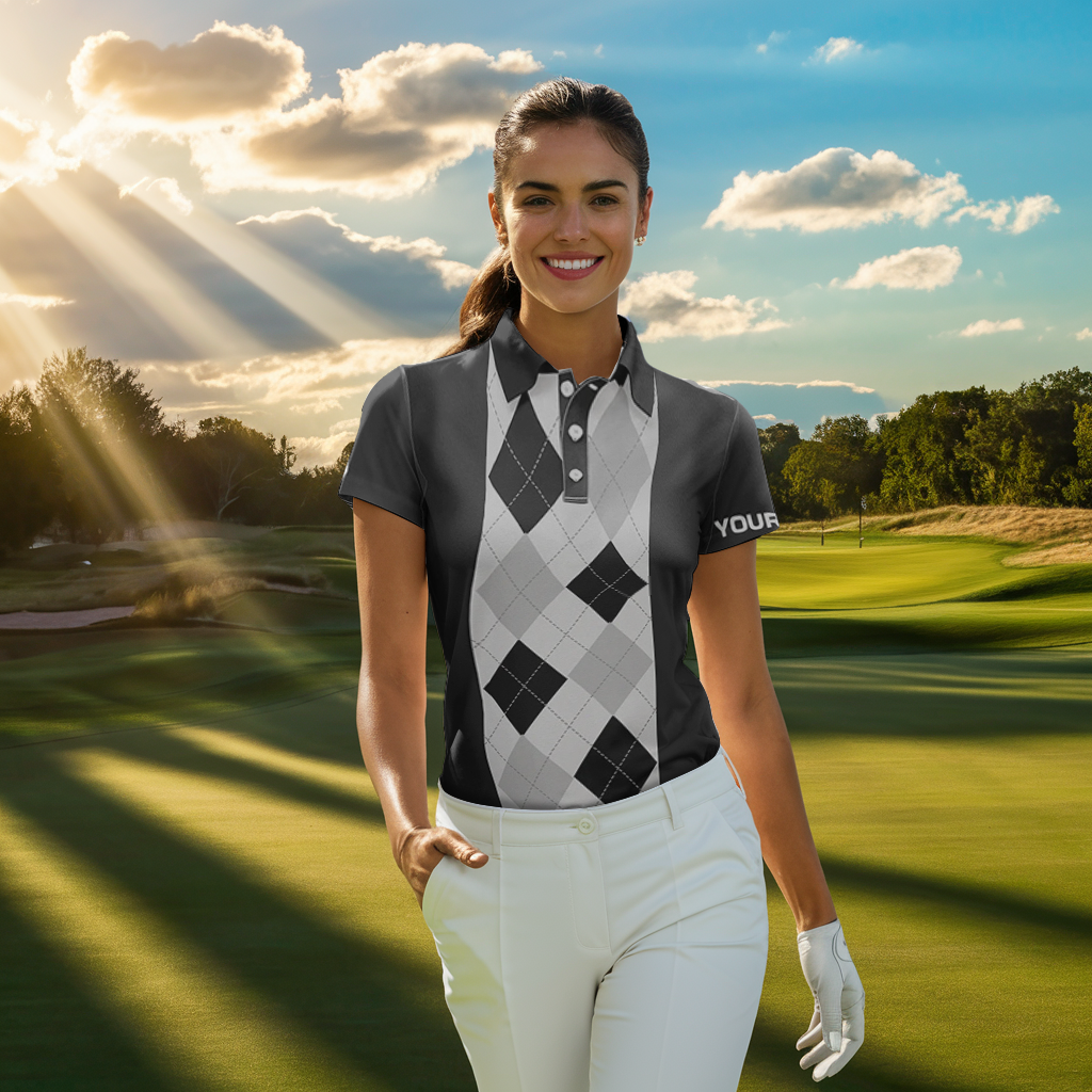 Schwarzes Argyle-Muster Golf-Polo für Damen | Individuelles Golf-Polo | Perfektes Golf-Geschenk N7192