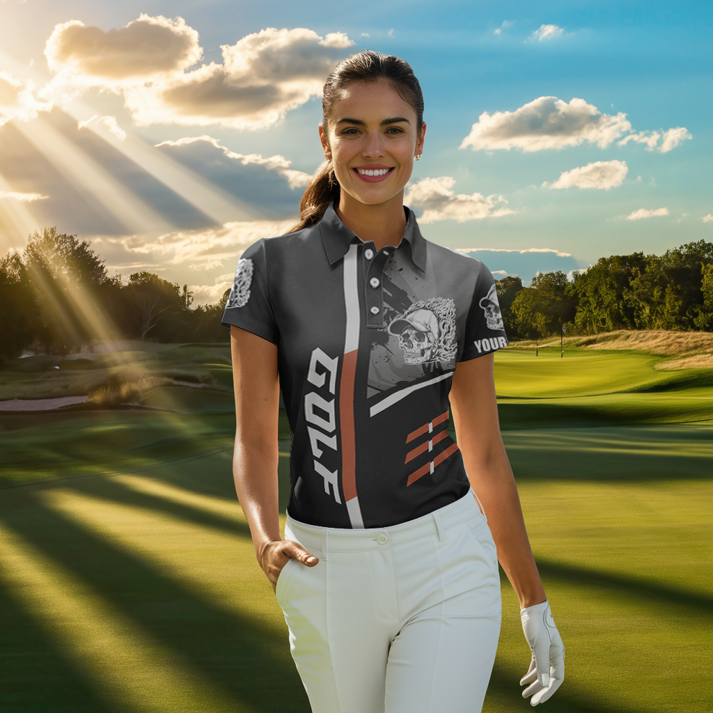 Stylisches Schwarzes Golf-Polo für Damen mit Totenkopf – Individuelle Golfbekleidung, das perfekte Geschenk für Golferinnen N7483