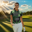 Individuelles schwarzes Golf-Polo für Damen mit grünem Blitzdesign – Team Golf-Trikot für Frauen N7325