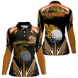 Individuelle schwarze Golf-Polo-Shirts für Damen mit orangefarbigem Blitzdesign - Premium Golfbekleidung für Frauen N7381