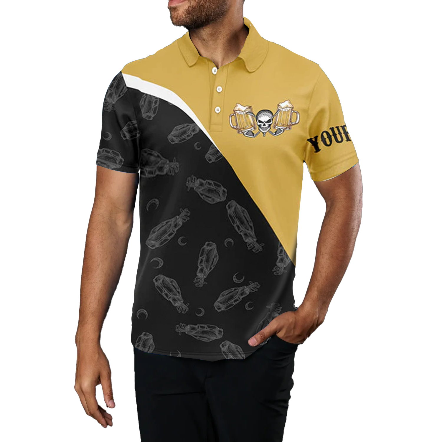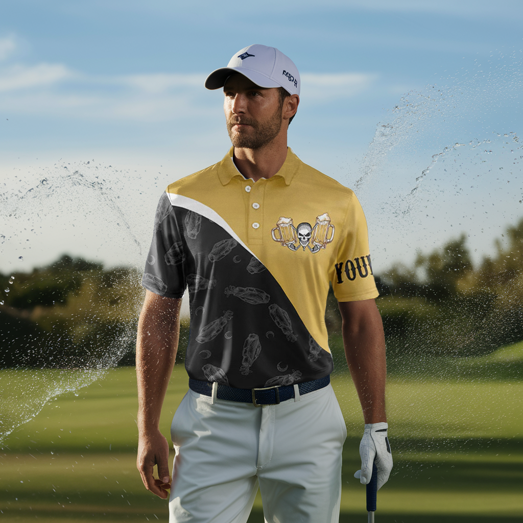 Individuelle Herren Golf Poloshirts mit Totenkopf in Schwarz und Gelb - Ideal für Golf- und Bierliebhaber N5250