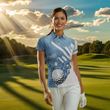 Elegantes Damen Golf Poloshirt mit Blau-Weißem Golfball-Motiv – Individuelles Teamshirt für Golferinnen N7506