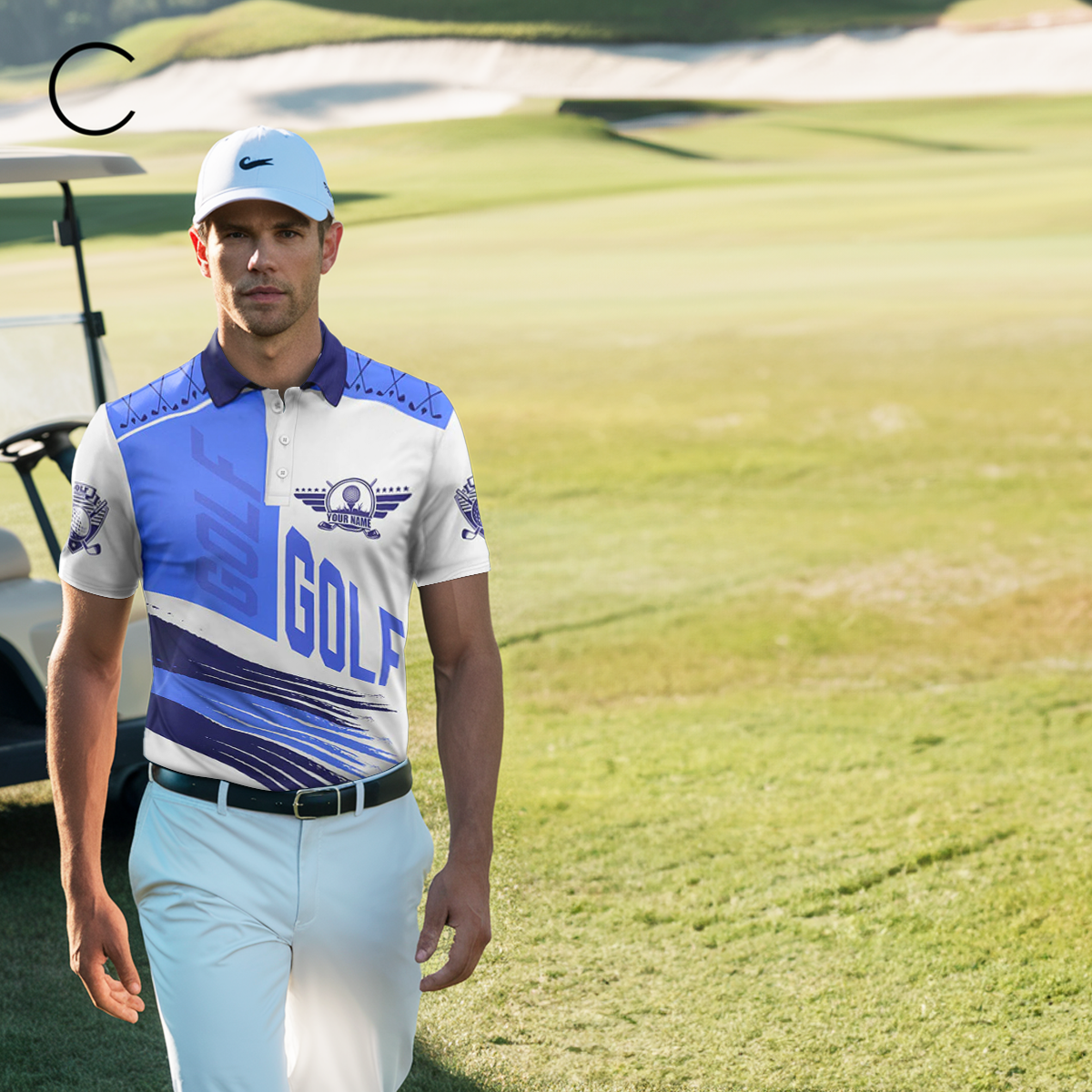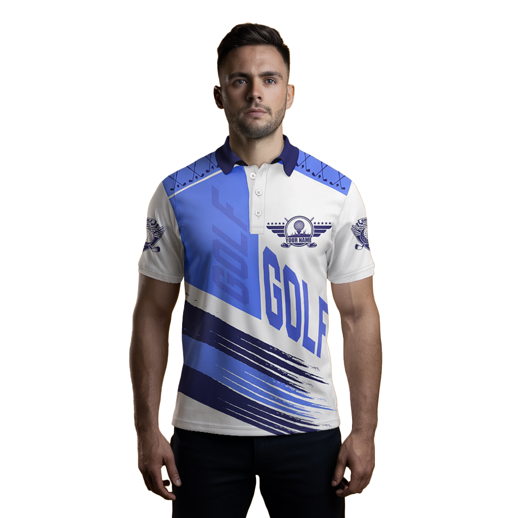 Blau-Weiße Herren Golf Poloshirts - Individuelle Team Golfbekleidung für Männer N7505