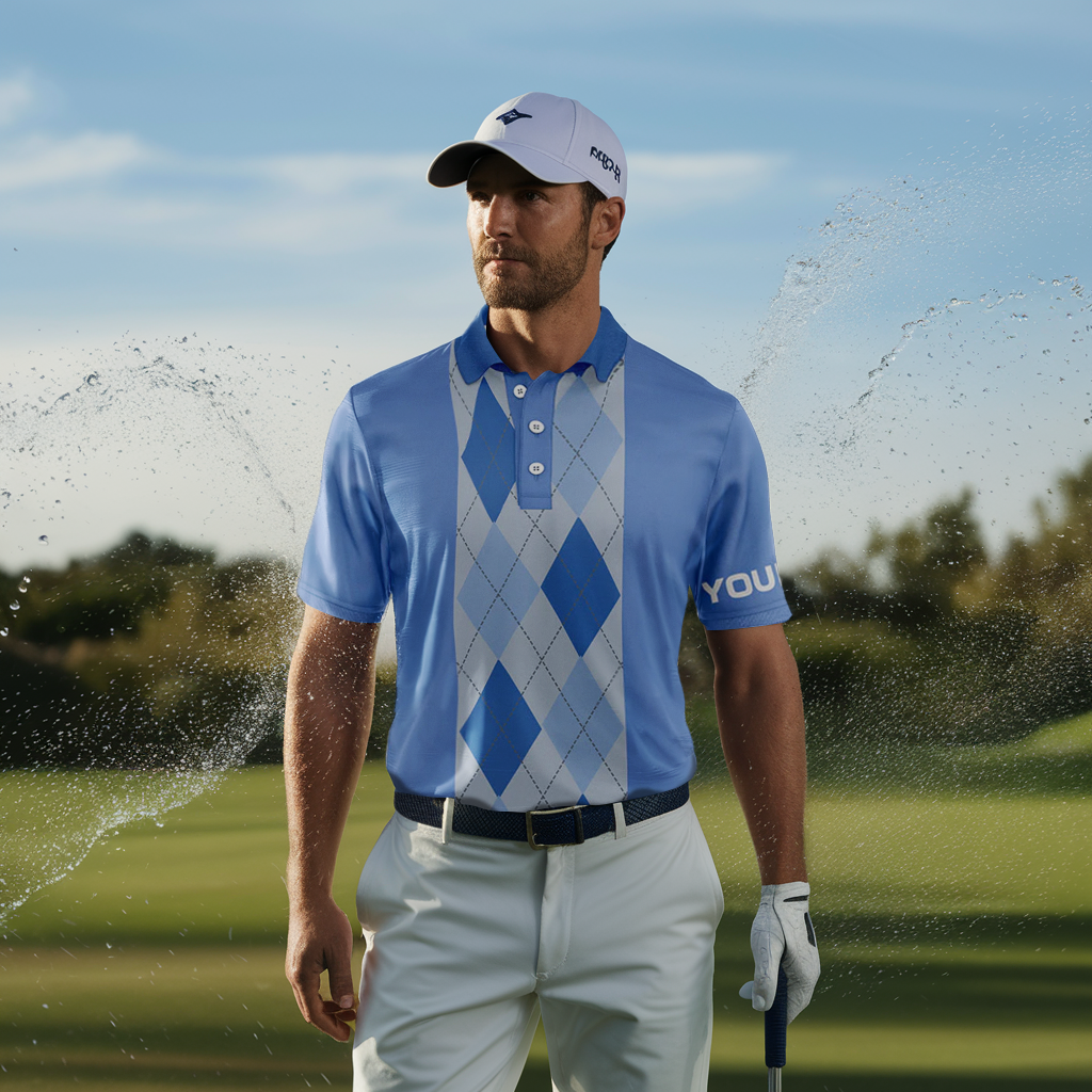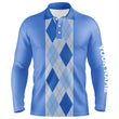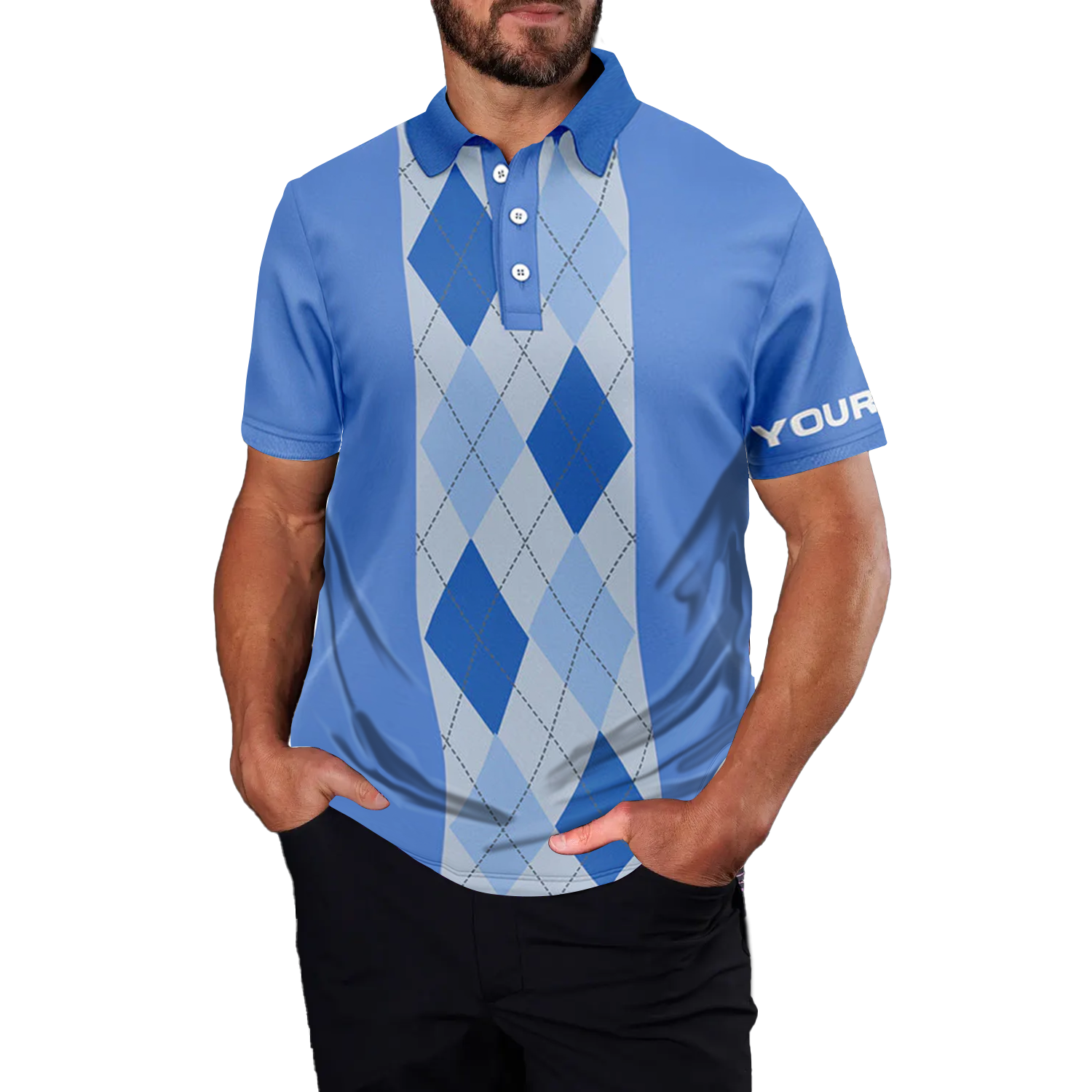 Herren Golf Polo-Shirt in Blau mit Rauten-Muster – Individuelles Golfoberteil für Golfliebhaber – Perfektes Geschenk für Golfspieler N7190