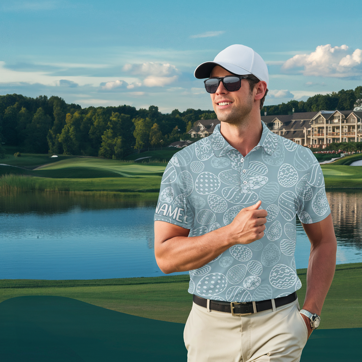Personalisierte Golfer-Polo-Shirts für Herren – Blaue Ostereier-Designs für den perfekten Ostertag! L1336