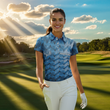 Elegantes Damen Golf Polo-Shirt mit blauem Dreiecksmuster – Individuelle Golfoberteile, das perfekte Geschenk für Golferinnen N7509