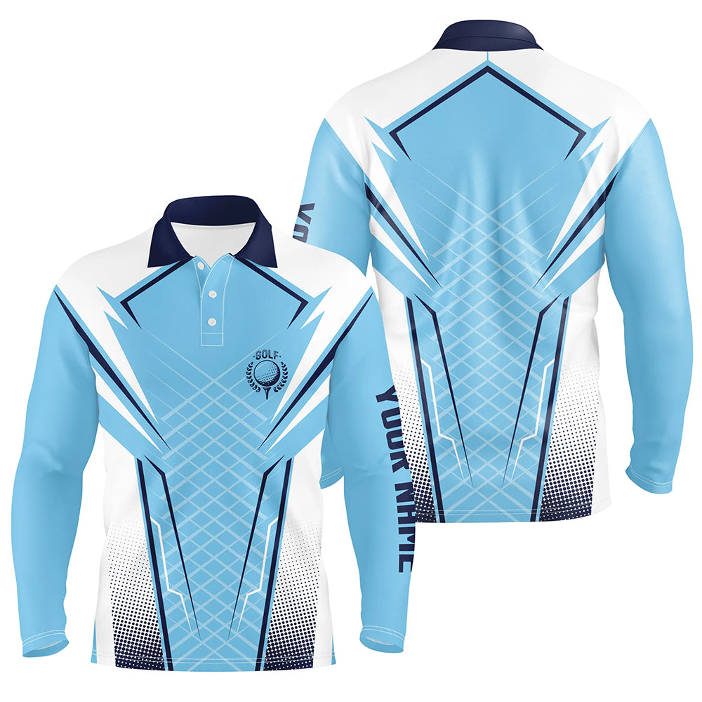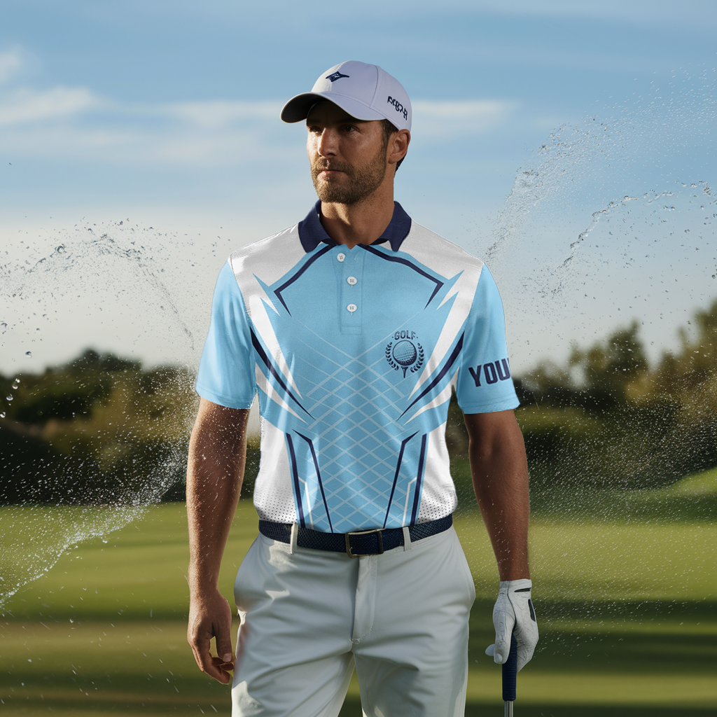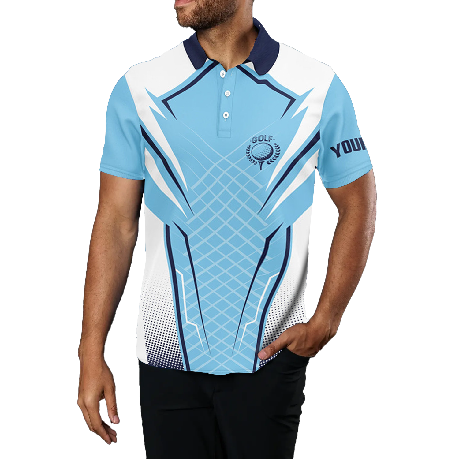 Personalisierte Herren Golf Poloshirts mit Wunschname – Blau-Weiße Golfer Geschenkidee L1436
