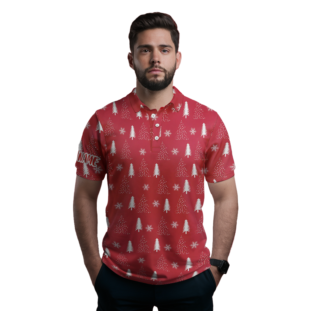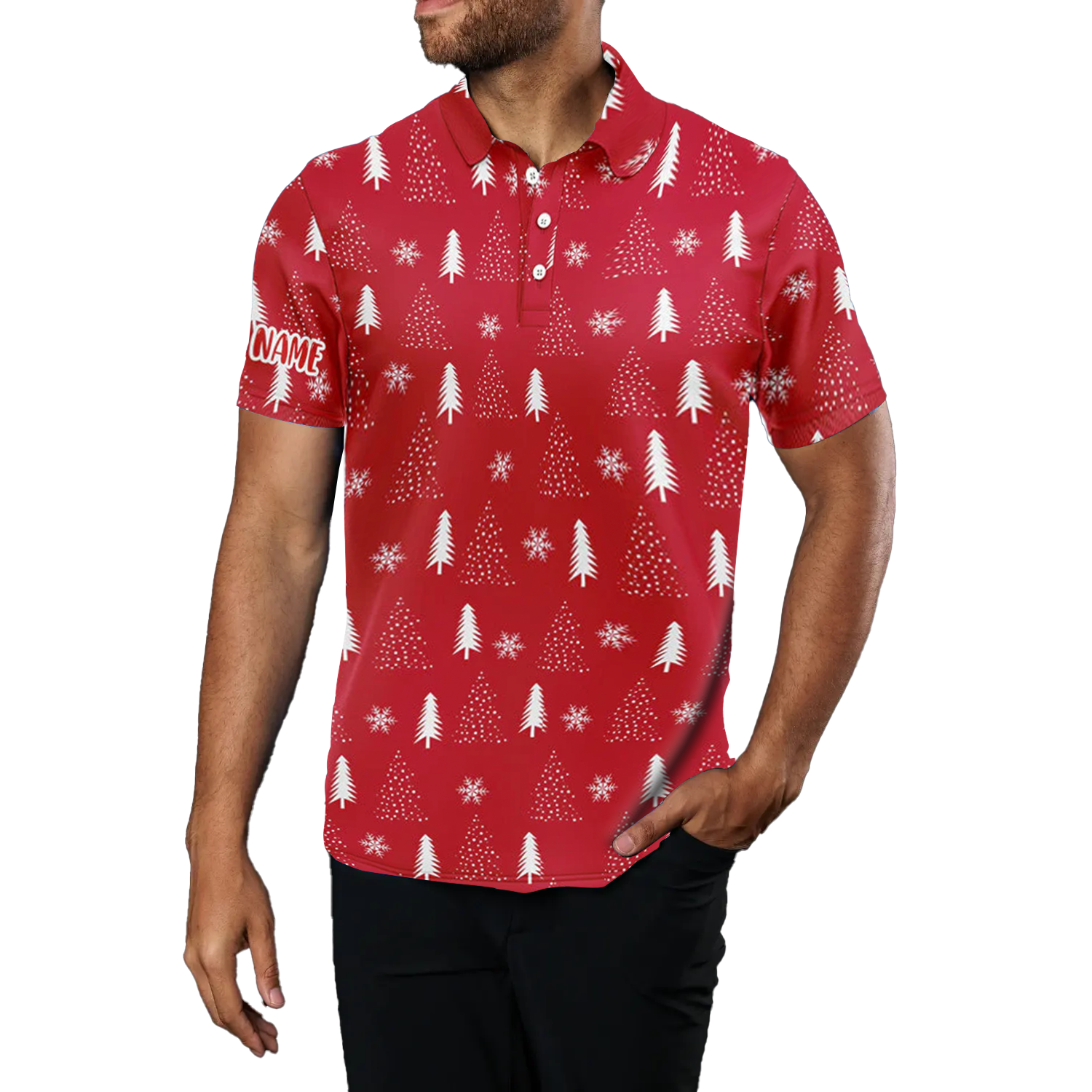 Herren Polo-Shirt in Rot mit Weihnachtsbaum - Personalisierbares Golfoberteil für Golf-Liebhaber - Perfektes Geschenk für Golfer L0618