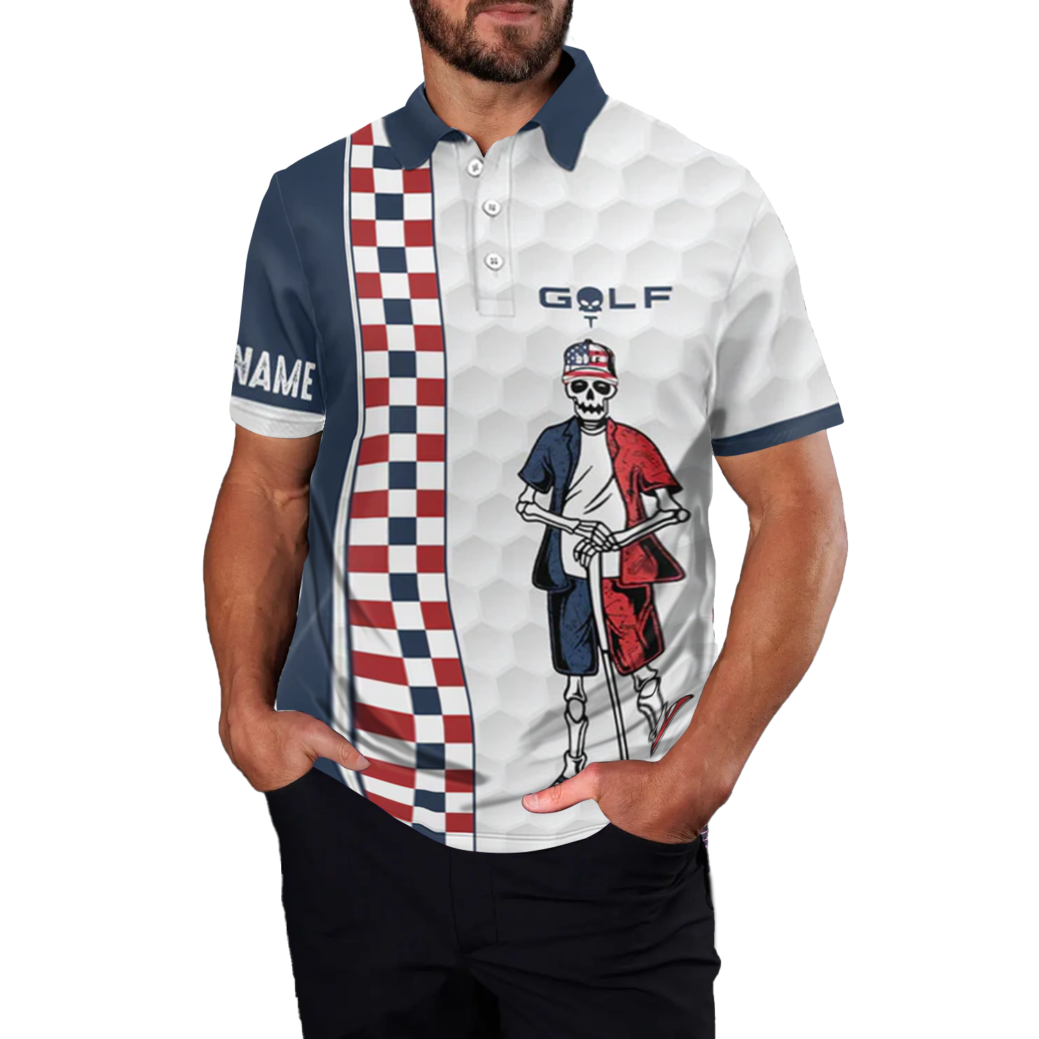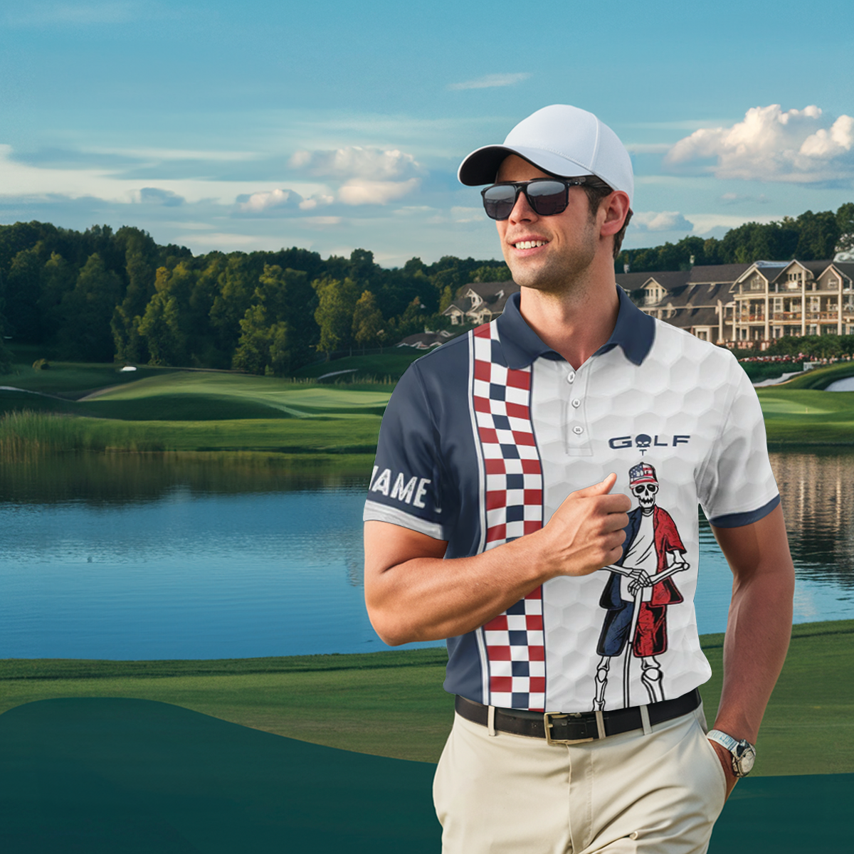 Herren Golf Polo mit Totenkopf-Schachbrettmuster - Lustiges Geschenk für Golfer L0296