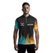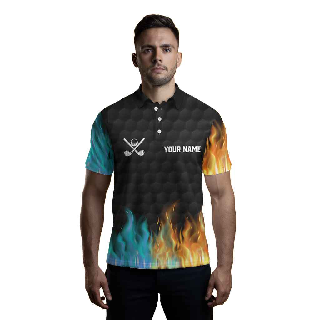 Herren Golf Polo-Shirt nach Maß - Schwarz mit Feuer- und Wasser-Golfball-Design - Perfektes Golf-Geschenk N7226