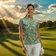 Elegantes Golf-Polo-Shirt für Damen mit tropischem Blattmuster - Individuell gestaltbar - Ideal für Golfspielerinnen N7471