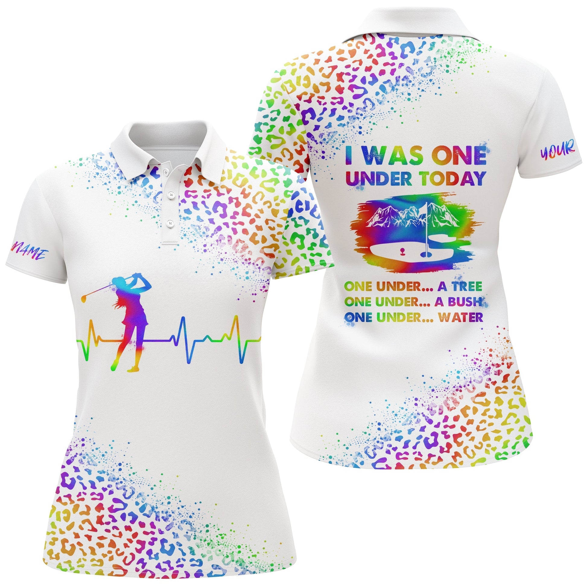 Personalisierte Damen Golf Poloshirts mit Wasserfarben-Leoparden-Design - Perfekt für einen fröhlichen Auftritt! N3481
