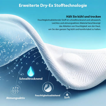 Fortgeschrittene Dry-Ex-Technologie: Atmungsaktiver, feuchtigkeitsableitender und schnell trocknender Stoff, wie er von Profi-Athleten verwendet wird.