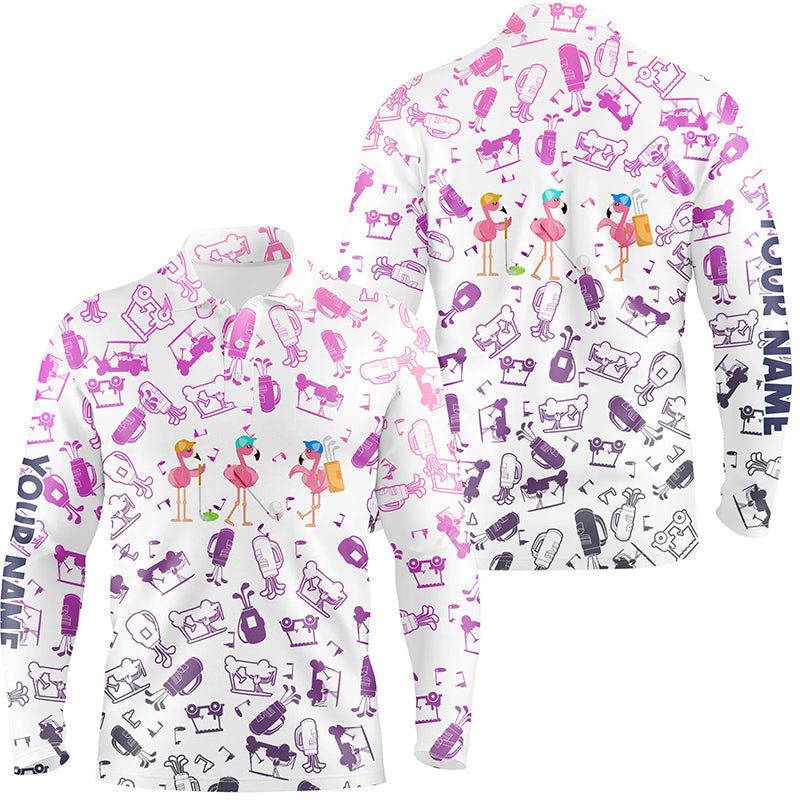 Personalisierte Flamingo Golf Poloshirts mit Neon-Golf-Icon-Hintergrund im Farbverlauf N5182