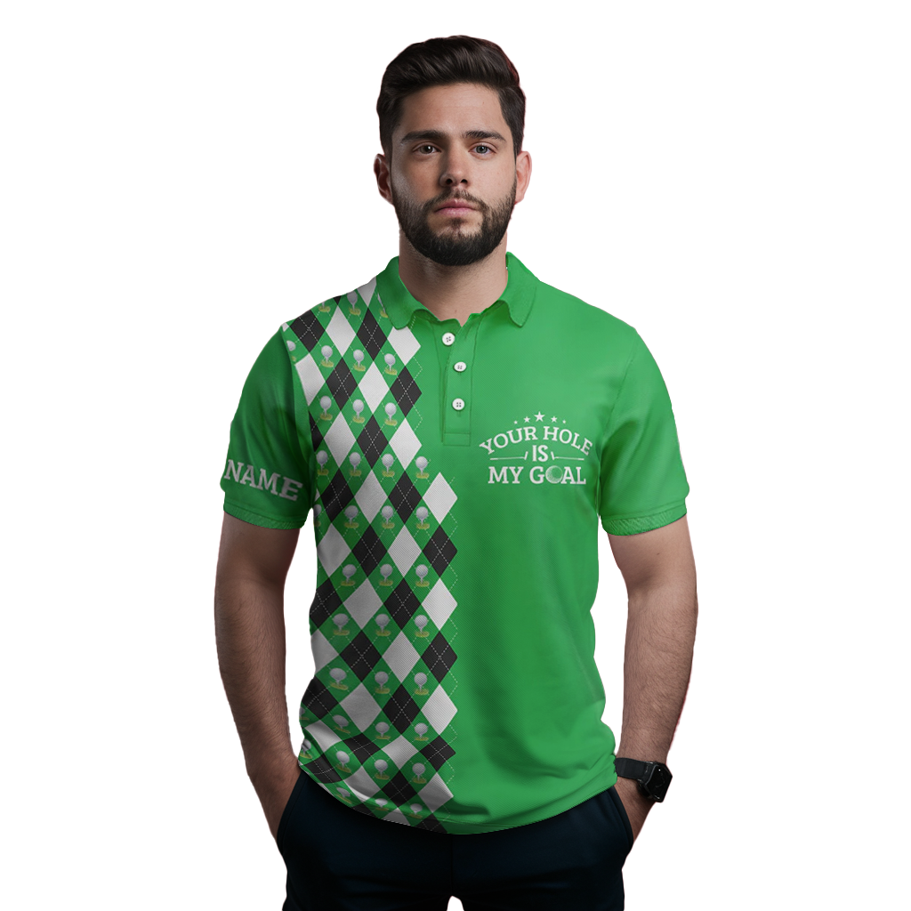 Golf Polo-Shirt für Herren mit grünem Argyle-Muster - Individuell gestaltbar mit "Dein Loch ist mein Ziel" - Perfektes Geschenk für Golfer N7461