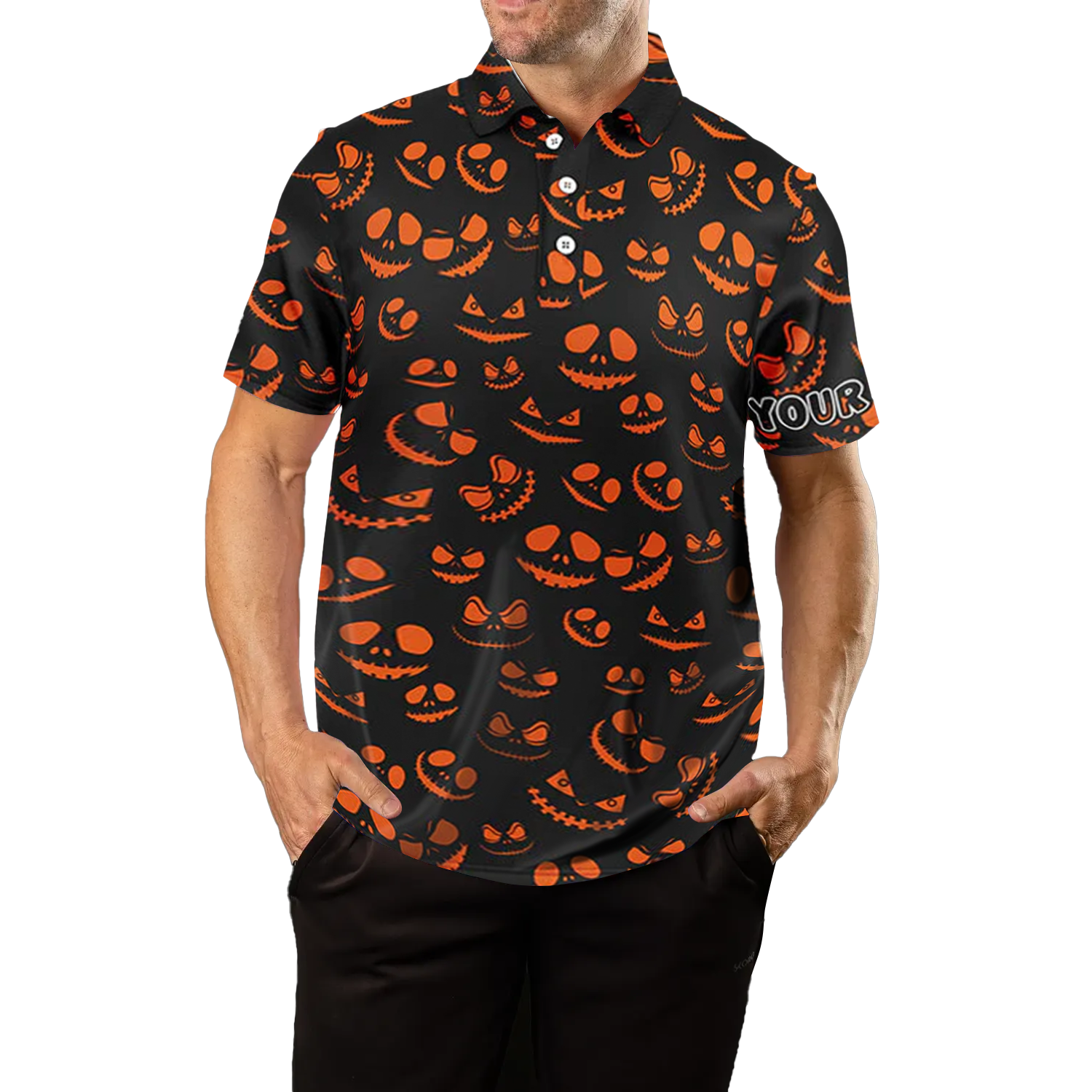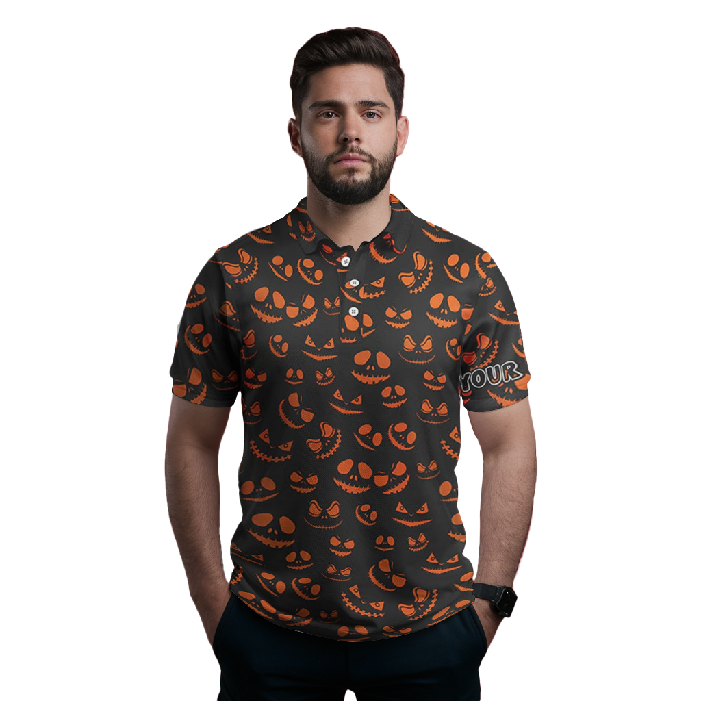 Witziges Halloween Polo-Shirt für Herren in Orange und Schwarz – Individuelles Golf-Outfit N6152