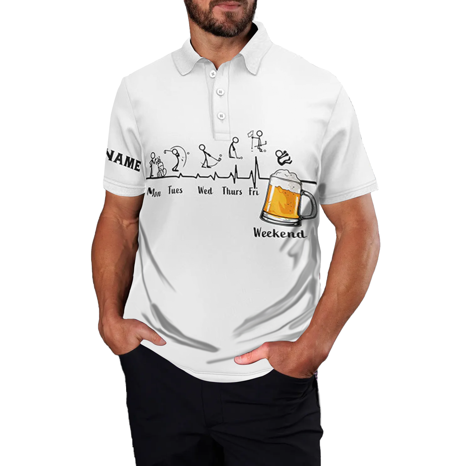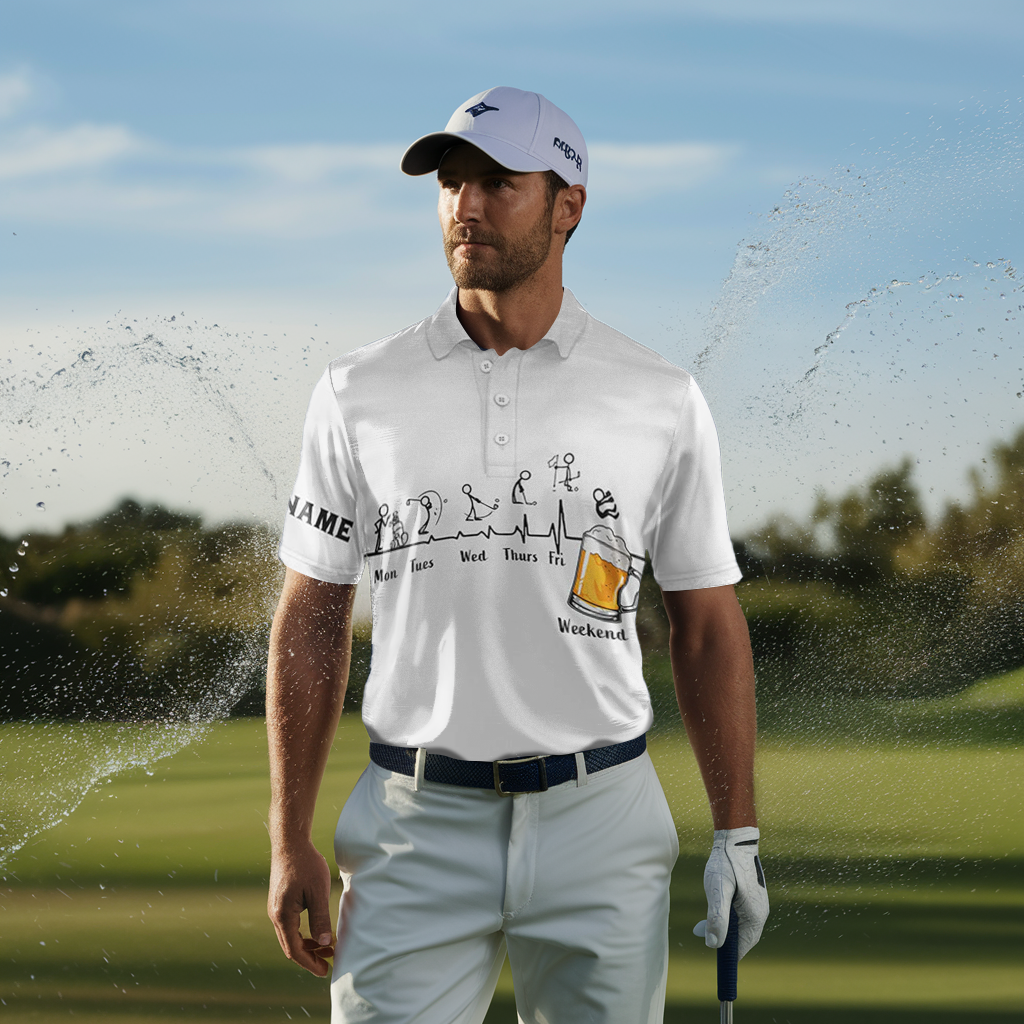 Individuelles Herren Golf-Polo-Shirt in Weiß - "Wochenendprognose: Golfen mit einer Prise Genuss" N7043
