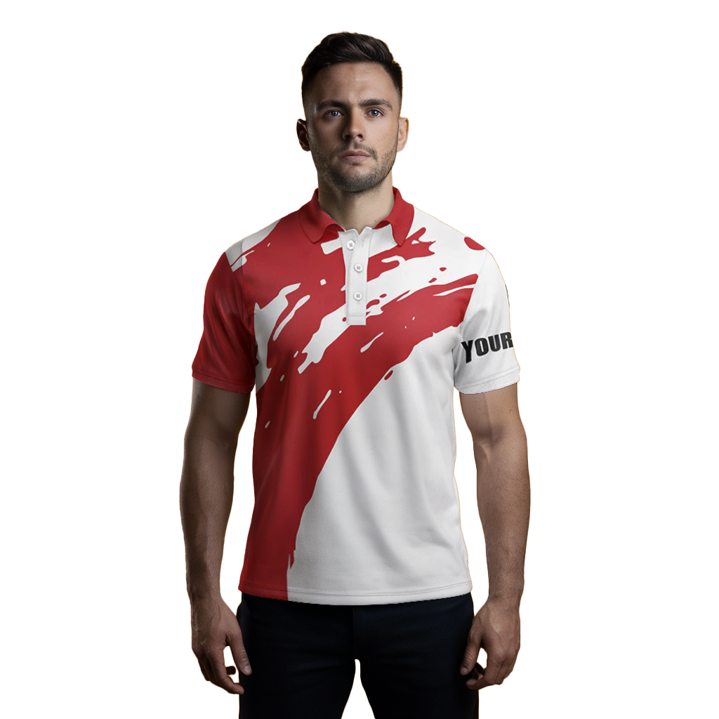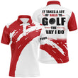 Personalisierte Herren Golf Poloshirt in Weiß – "Es braucht viel Mut, so Golf zu spielen wie ich" | Rot N7013
