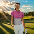 Modisches Damen Golf-Polo-Shirt mit Flamingo-Motiv in Pink und Weiß - "Spreche Birdie mit mir" N7527