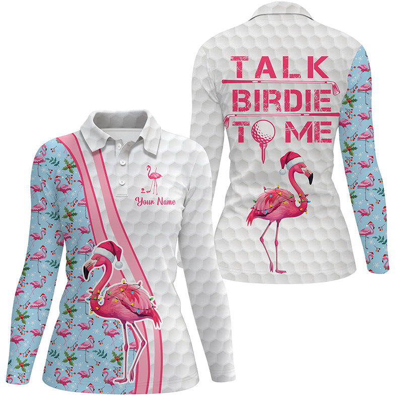 Lustiges Damen Golf-Polo mit individuellem pinken Flamingo - Weihnachts-Golfshirt „Sprich mit mir, Birdie!“ N8992