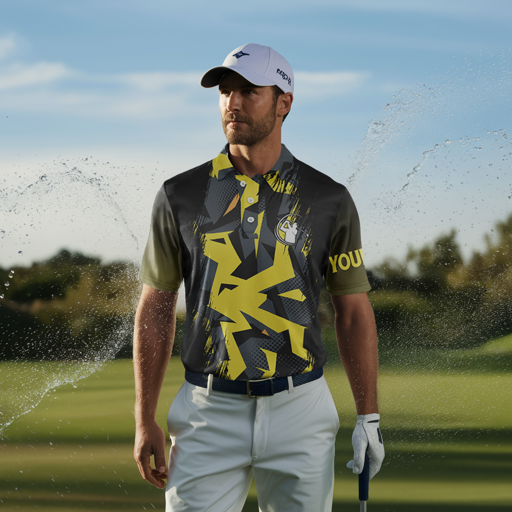 Individuelles Schwarz-Gelb Camouflage Golf-Polo für Männer – Ideal für Golf- und Bierliebhaber N7427