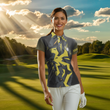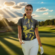 Golf und Bier - Das ist mein Grund! Individuelles Damen-Golfpoloshirt in Schwarz-Gelb mit Camouflage-Muster N7427
