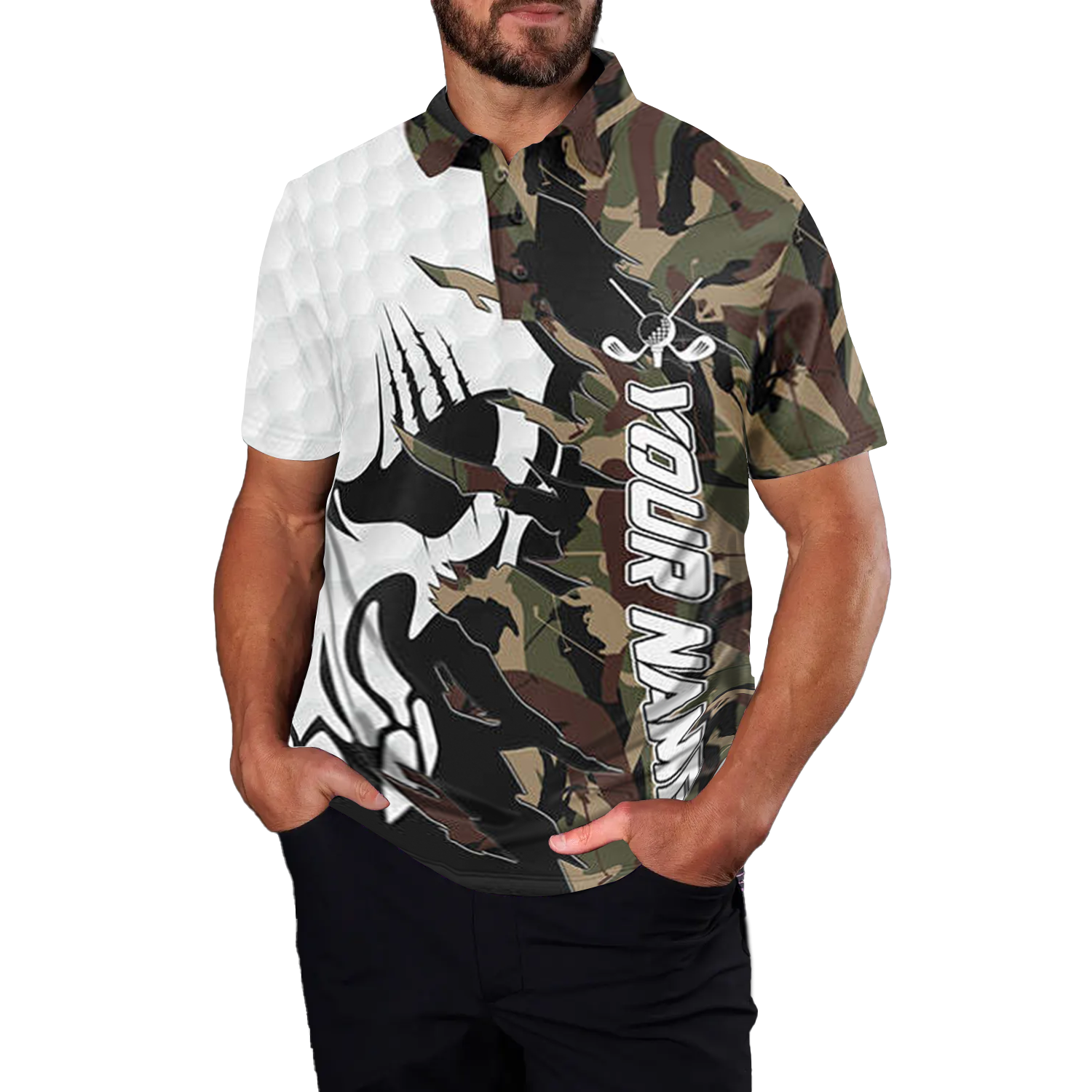 Herren Golf Camo Polo mit individuellem Namens- und Totenkopf-Design N6999