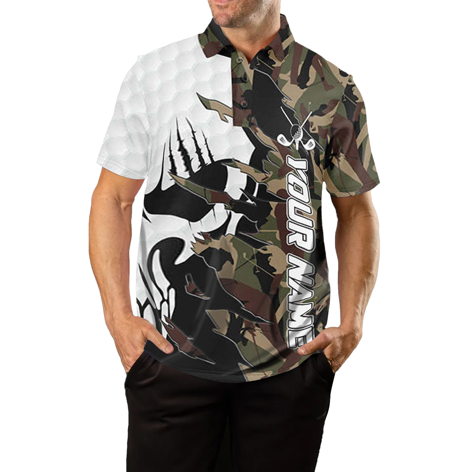Personalisierte Herren Golf Polo Shirts mit Camouflage-Design - Individuelle Golf Skull Shirts, Perfekte Geschenke für Golfspieler N6999