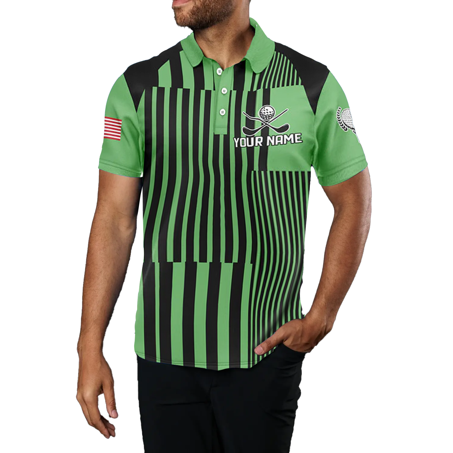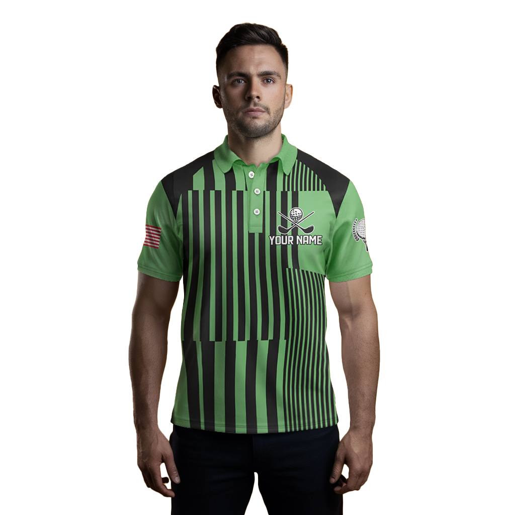Herren Golf Poloshirts mit individuellen Teamdesigns – Premium Golfbekleidung in Grün-Schwarz gestreift N7350