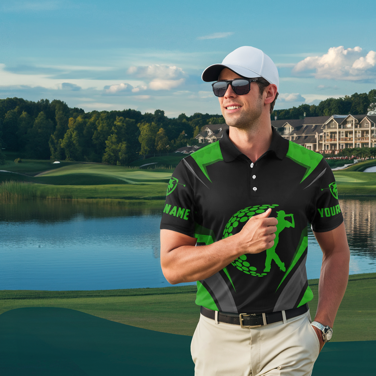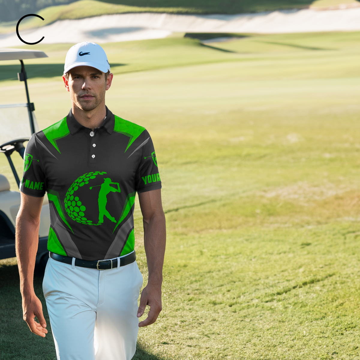 Herren Golf Polo-Shirt in Grün-Schwarz - Individuelles Geschenk für Golf-Enthusiasten N3331