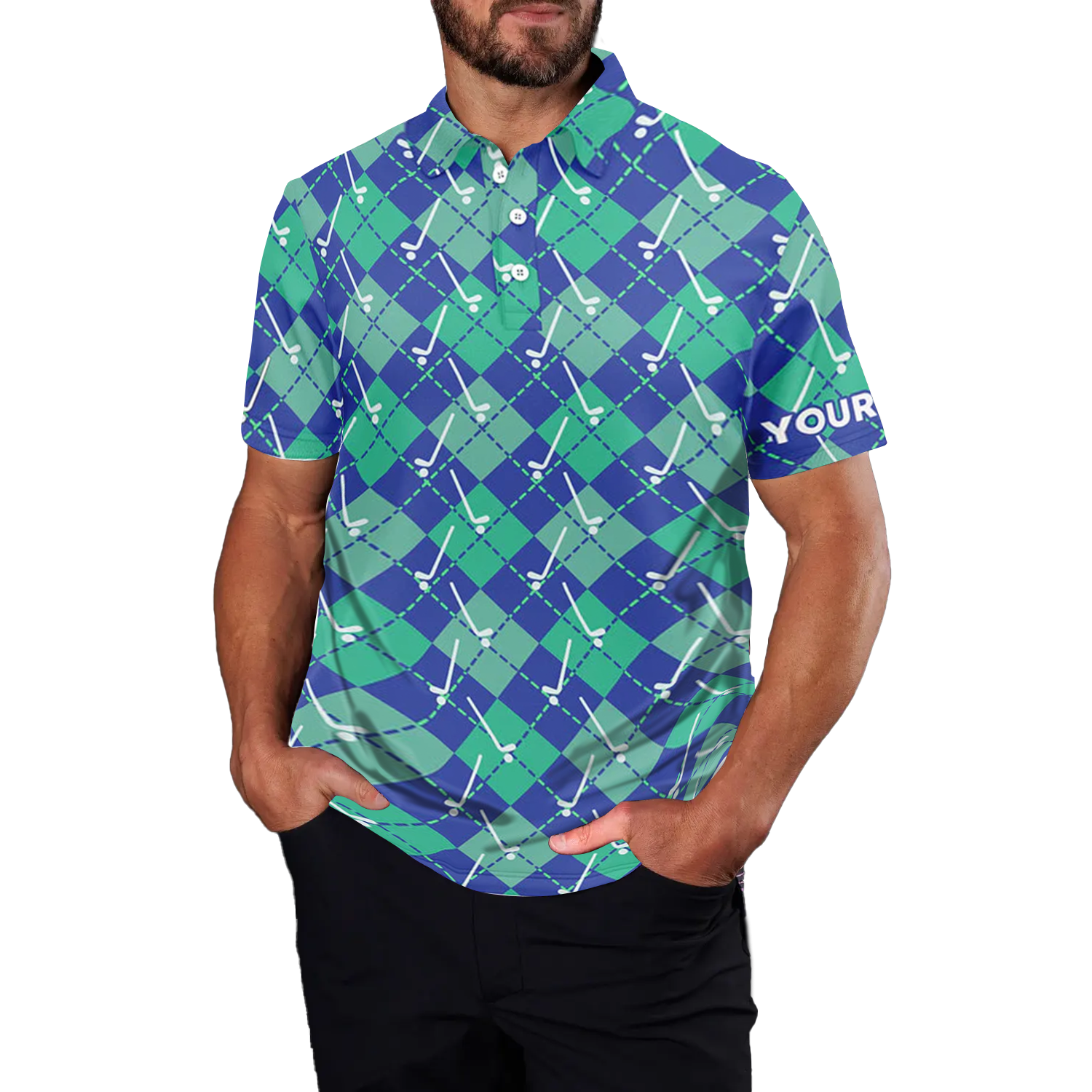 Herren Golf Polo-Shirt mit grün-blauem Karomuster N6849