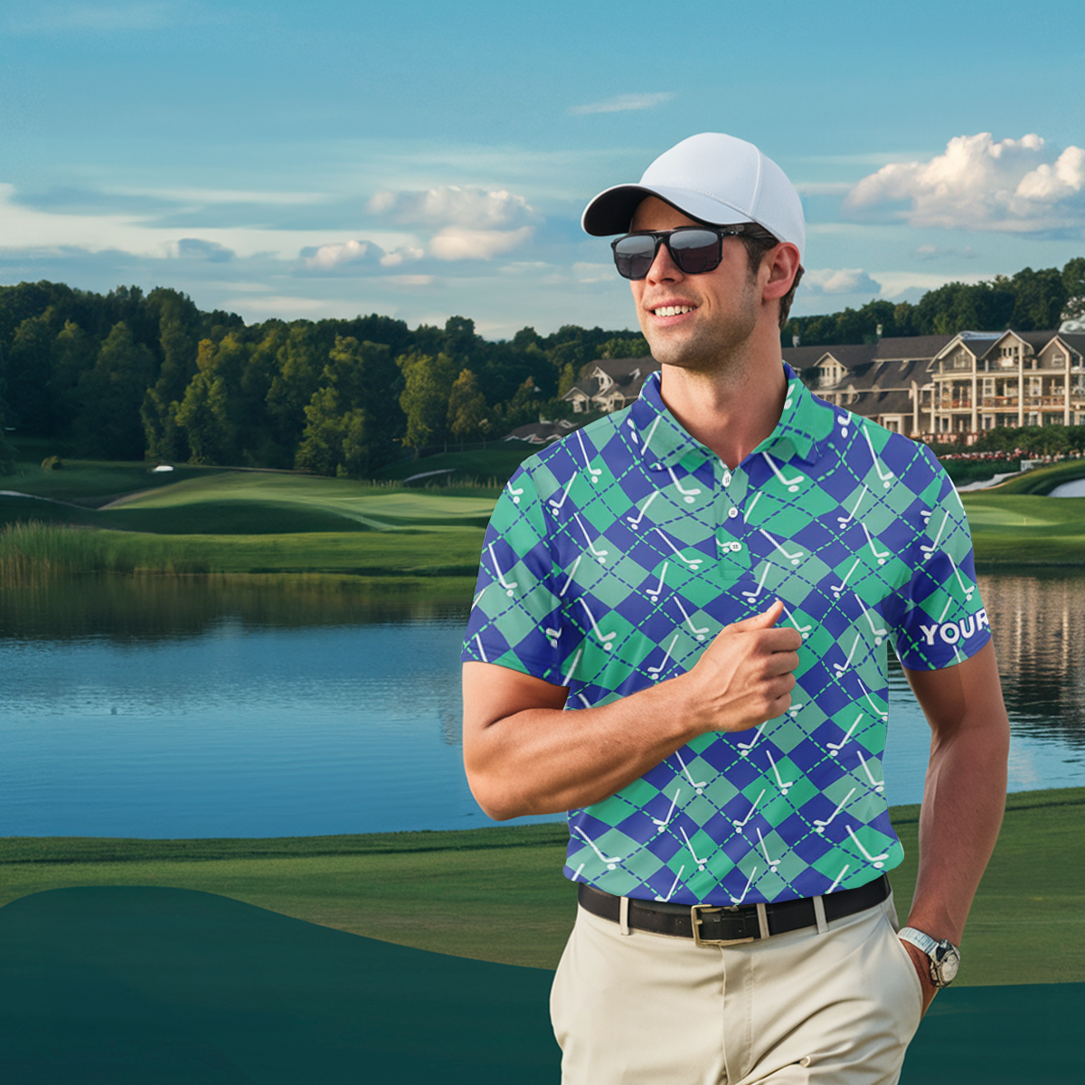 Individuelles Golf-Polo-Shirt für Herren im grünen und blauen Argyle-Muster – Das perfekte Geschenk für Golfer N6849