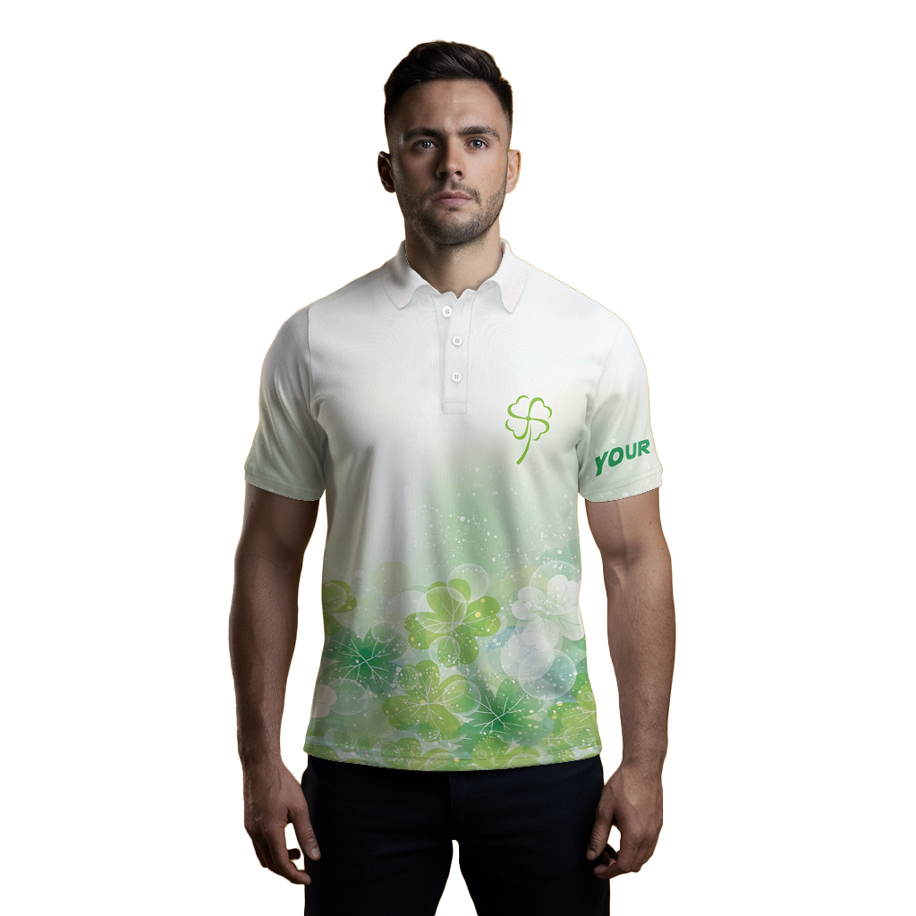 Grünes Kleeblatt Silhouette Glitzern Herren Golf Polo - Individuelles Golfshirt für St. Patrick's Day Geschenk L1331