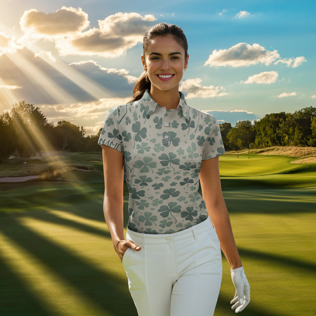 Modisches Damen Golf Poloshirt mit grünem Kleeblatt-Design – Das ideale Golfgeschenk für sie L1312