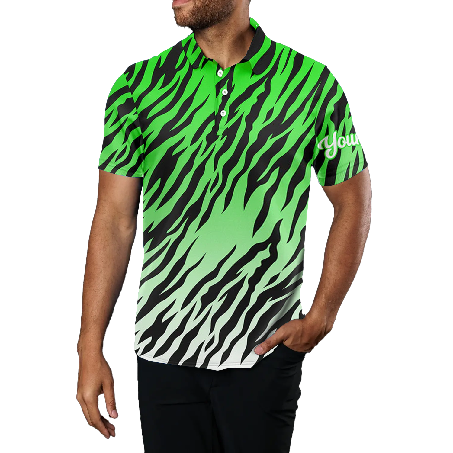 Herren Golf Poloshirt mit grünem Tigerstreifen-Muster – Hochwertige Golfbekleidung, Perfektes Geschenk für Golfer N7109