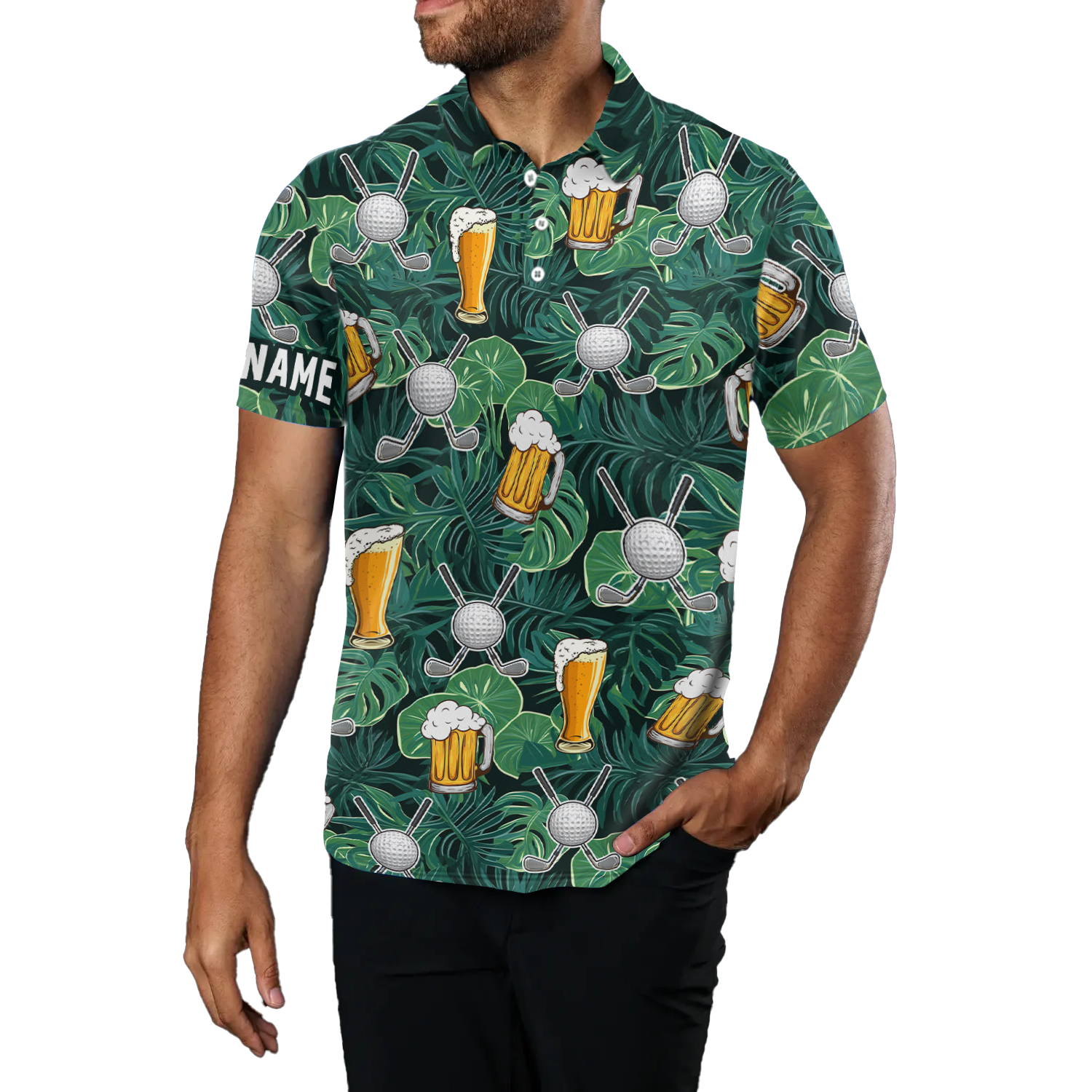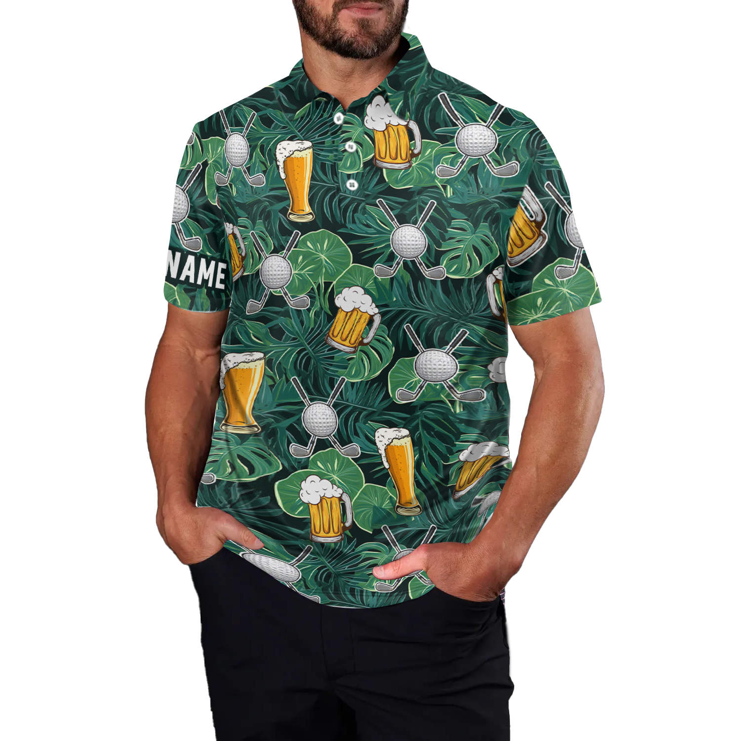 Tropisches Grünes Blatt Golf Bier Print - Individuelles Herren Golf Polo-Shirt N7472