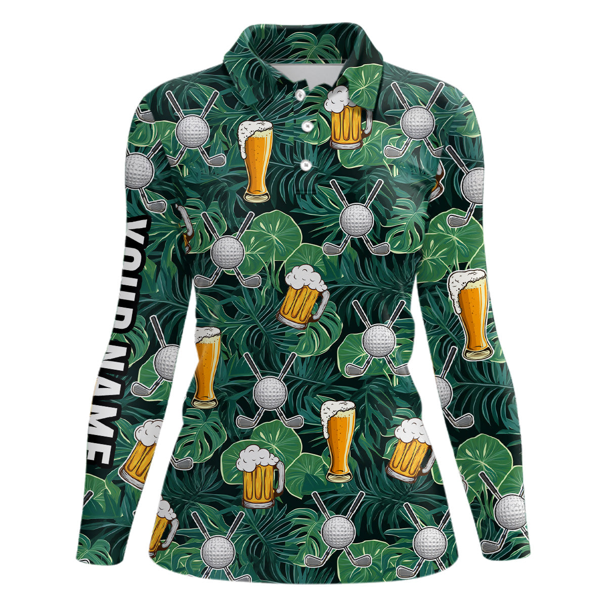 Individuelles Damen-Golf-Polo mit tropischem Blätter-Design und Bier-Muster – Stilvolle Golfoberteile für Damen N7472