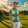 Elegantes Damen Golf Polo mit grün-gelbem Argyle-Muster – Individuelles Golfoberteil N7372